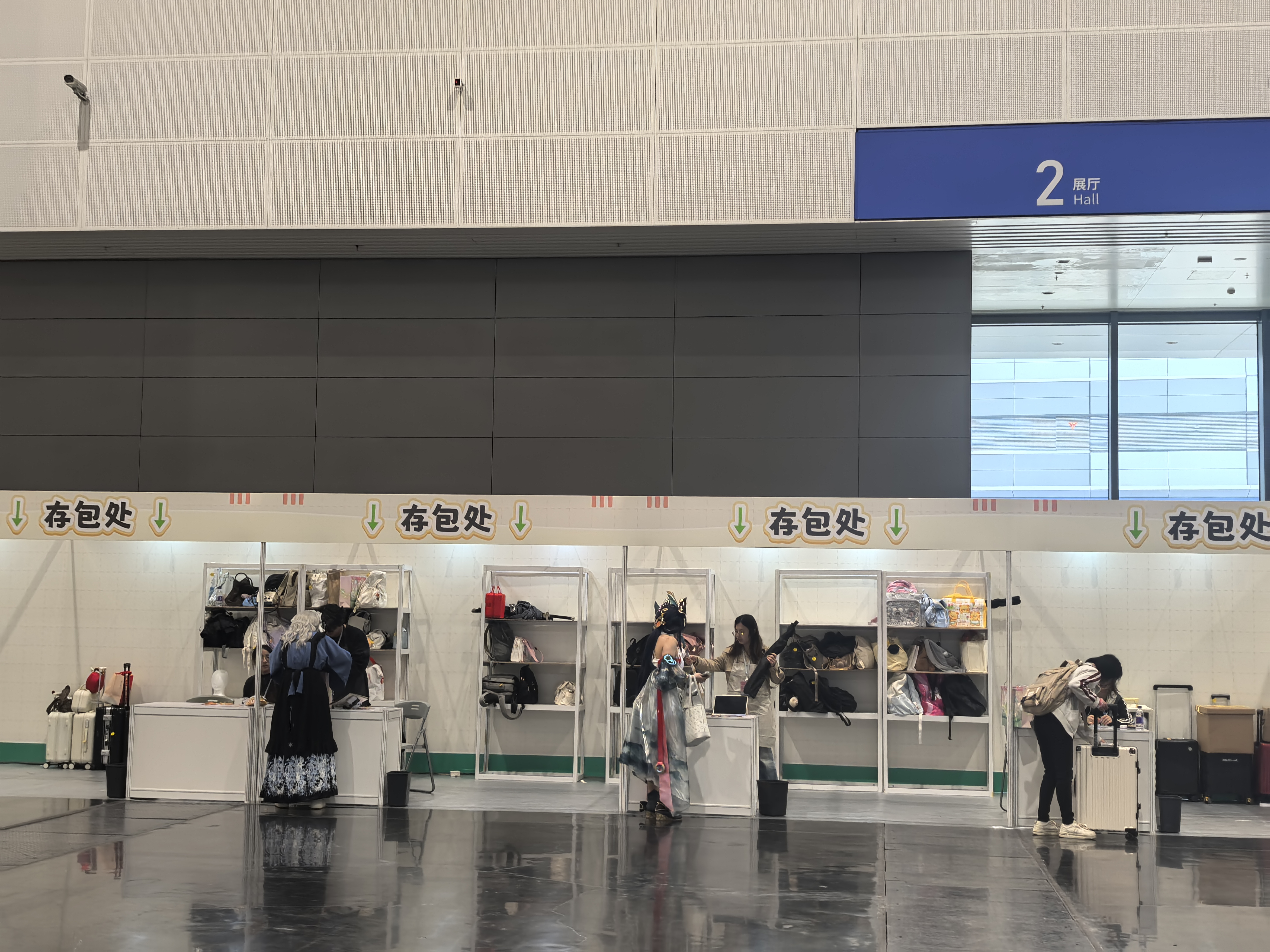 2号馆作为HAHA漫展的登录厅,是观众入场的第一站,贴心打造一站式服务空间。馆内设置了官方服务台、装备寄存处以及由毛戈平品牌打造的化妆区。观众们可以在此馆寄存物品、化妆、休息等等,其为观众提供了便利的服务。VIP观众从上午9:30开始优先入场,现场秩序井然。