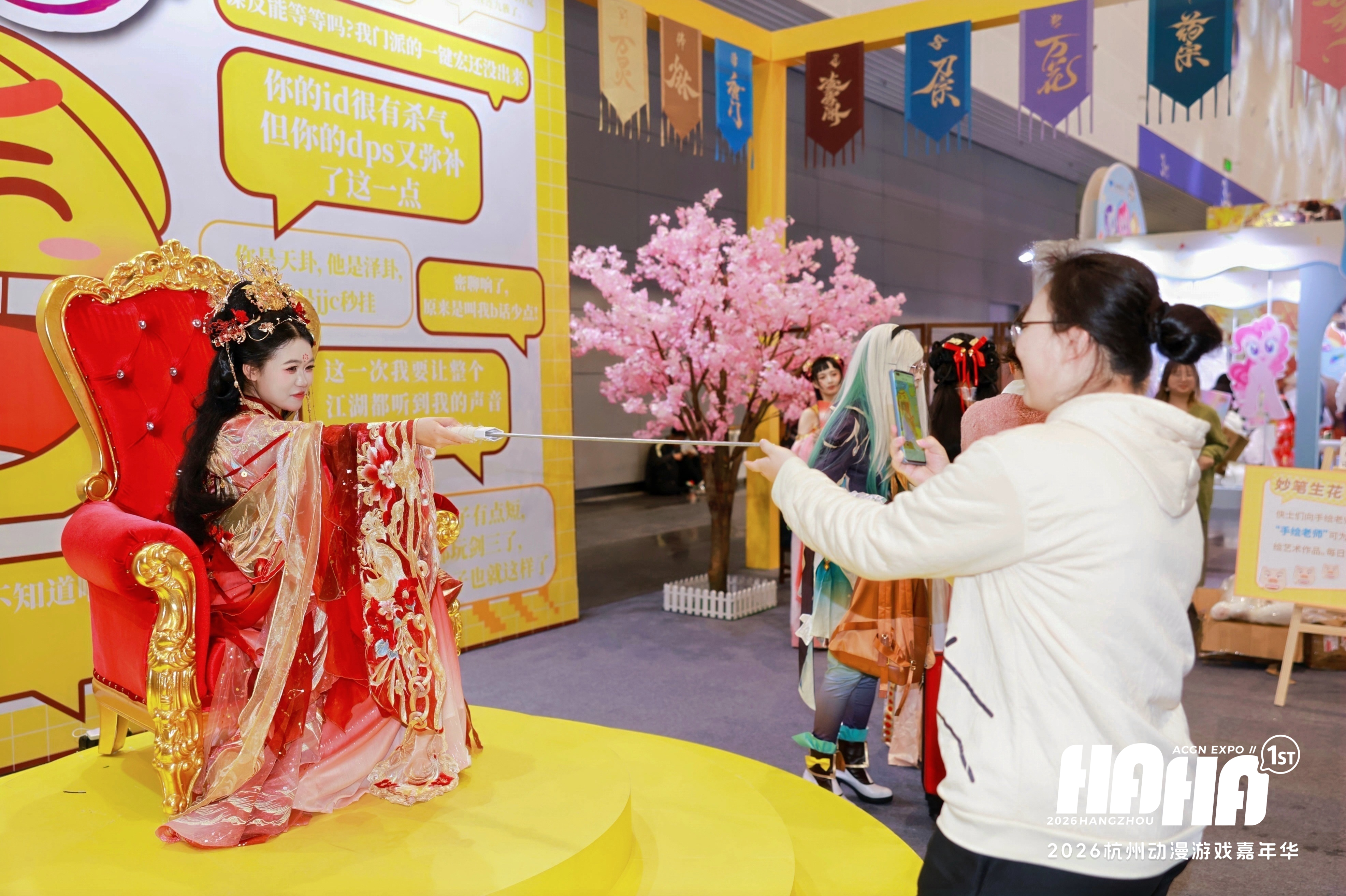 清明小长假落幕,二次元的狂欢仍在杭州热度不减。4月4日至6日,2026年杭州首场大型综合性漫展——HAHA1st杭州动漫游戏嘉年华,在杭州大会展中心火热开启。4万平方米场馆集结《盗墓笔记》《画江湖之不良人》《沧元图》等二十余个头部国漫IP,吸引了众多人奔赴这场春日动漫盛宴。相较于以往漫展同龄人结伴而行的常态,本届漫展现场,一道风景格外亮眼:越来越多的家长告别旁观者身份,主动走进孩子的热爱,成为少年逛展路上的同行者。
